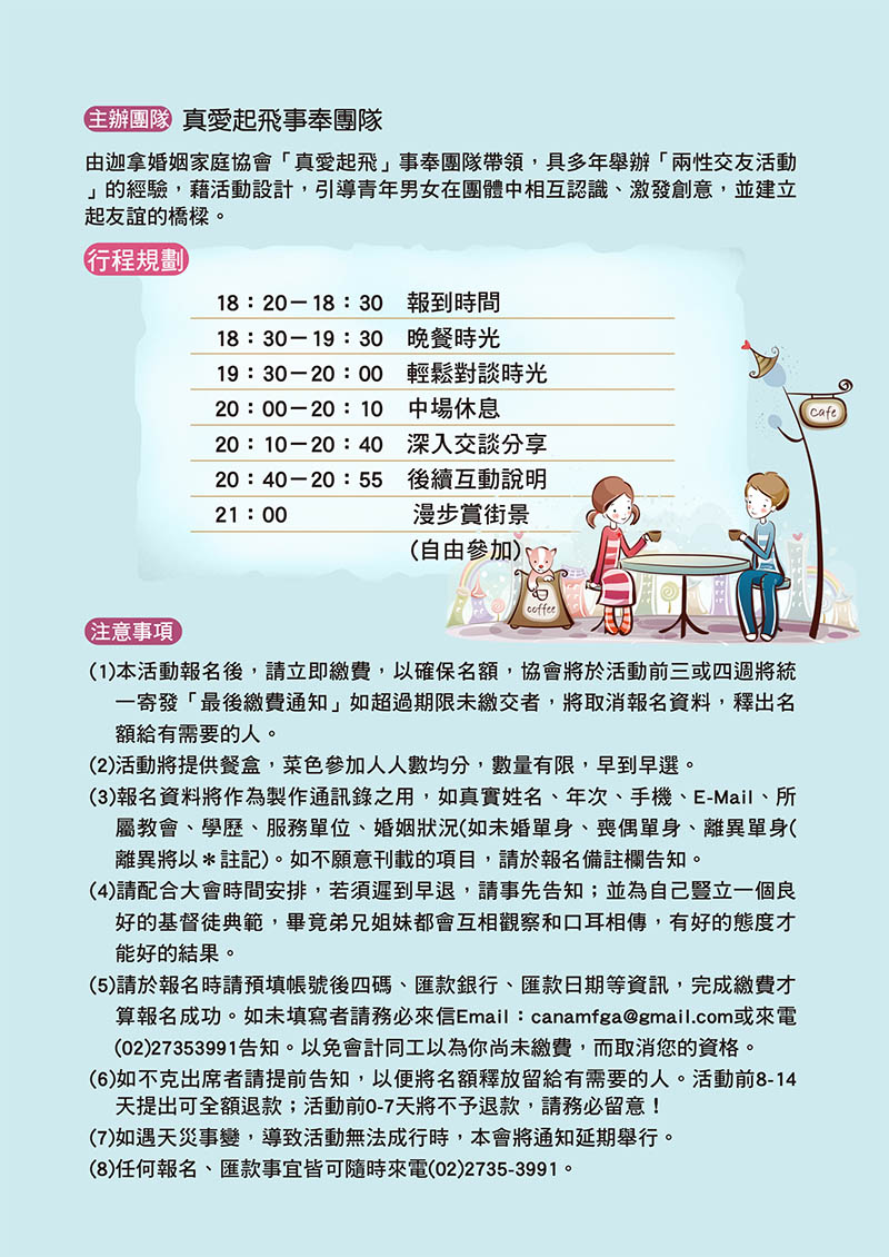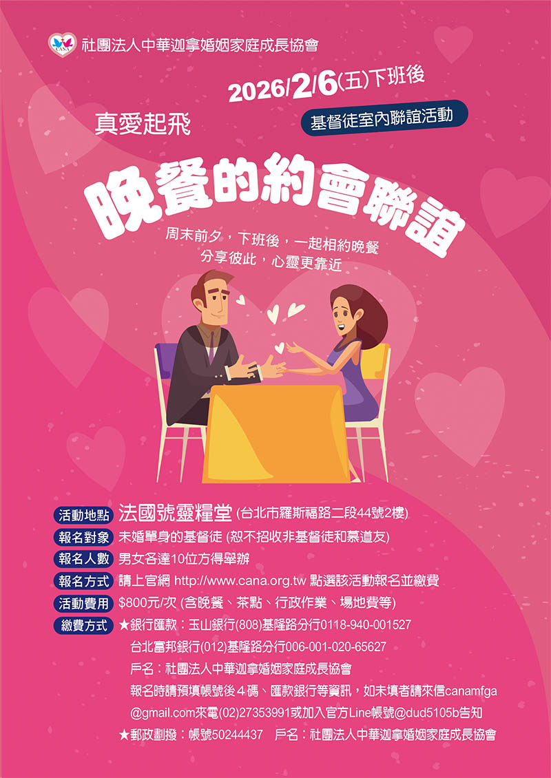 • 【真愛起飛】晚餐的約會聯誼(基督徒室內聯誼活動)