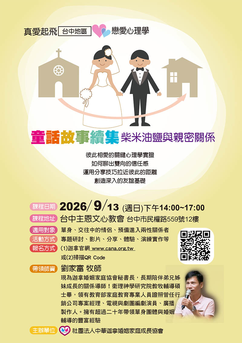 個別婚前輔導 請電洽迦拿協會(02)27353991